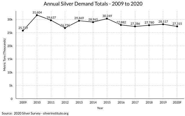 由于公共卫生事件和经济疲软,预计2020年白银需求将小幅下降。