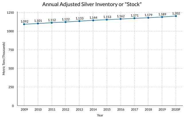 上述存量是基于已开采的白银总量。每年有很大一部分白银用于工业用途。将每年用于工业用途的银量与每年回收的银量进行比较,在过去的十年中,每年因工业用途而损失的银量平均约为每年开采量的44%。