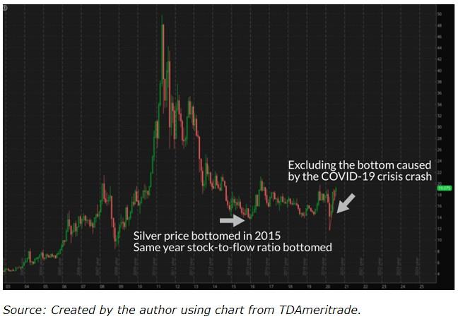 比特币的案例可能表明存量产出比是衡量白银价格走势的良好指标,但也可能只是巧合。这仍需要更大的数据集或样本量来确定。