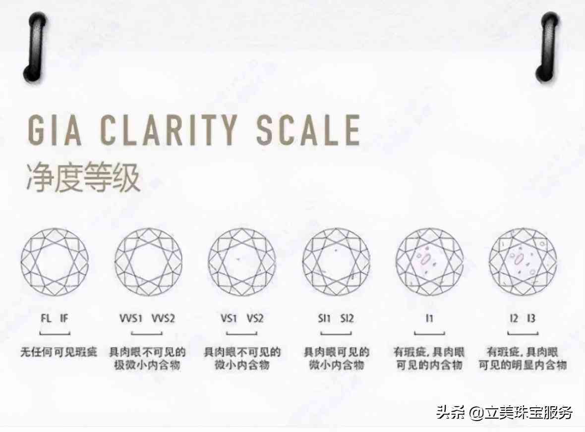 净度就是指的钻石内部的瑕疵数量,瑕疵数越多,价格也就越低,而净度也分为多个等级,其中由高到低详细可分为FL,IF,VVS1,VVS2,VS 1,VS2,SI1,SI2,SI3,P1,P2,P3。如果你购买的钻石是最高等级的,价格要贵上不少,P1往后的基本上就是肉眼都可以看到瑕疵,这种就非常不建议购买。