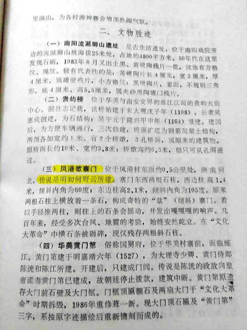 1369年,明洪武二年,何野云在陈店为指点草尾乡建寨门,此时何野云44岁。而认祖宗的人,此时15岁。