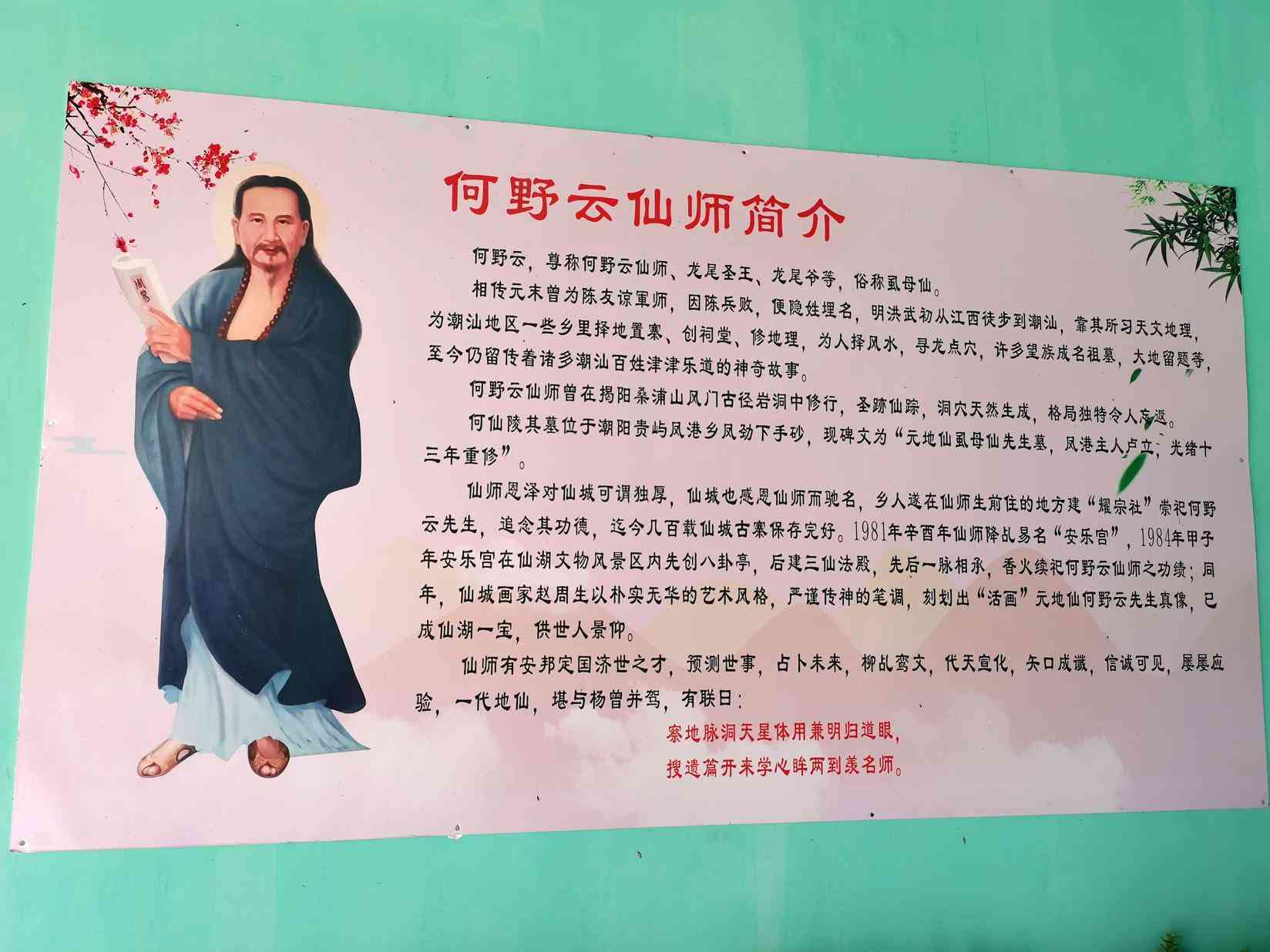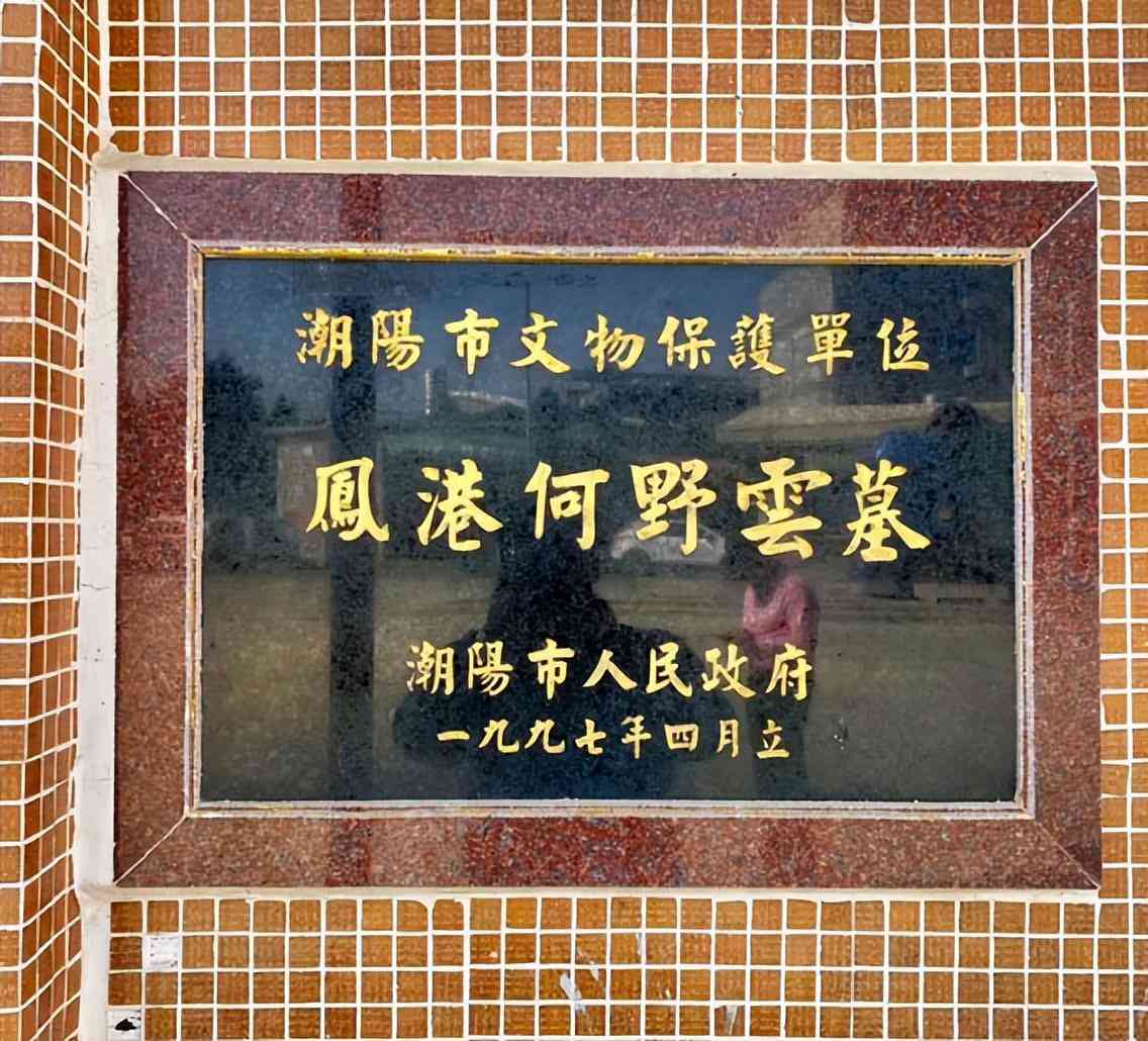 而不同的是,潮汕很多遗迹都是文物保护单位。清《凤港卢氏族谱》记载何野云“先师常住我四世祖家中,后化身,骸骨埋凤颈下手砂”,即现在的潮阳贵屿凤港何僊陵。 何僊陵面朝练江支流,逆水朝堂,位于凤港村凤地的凤颈处,是风水宝地。而且潮阳何僊陵有古时的墓碑存记,还是文物保护单位。