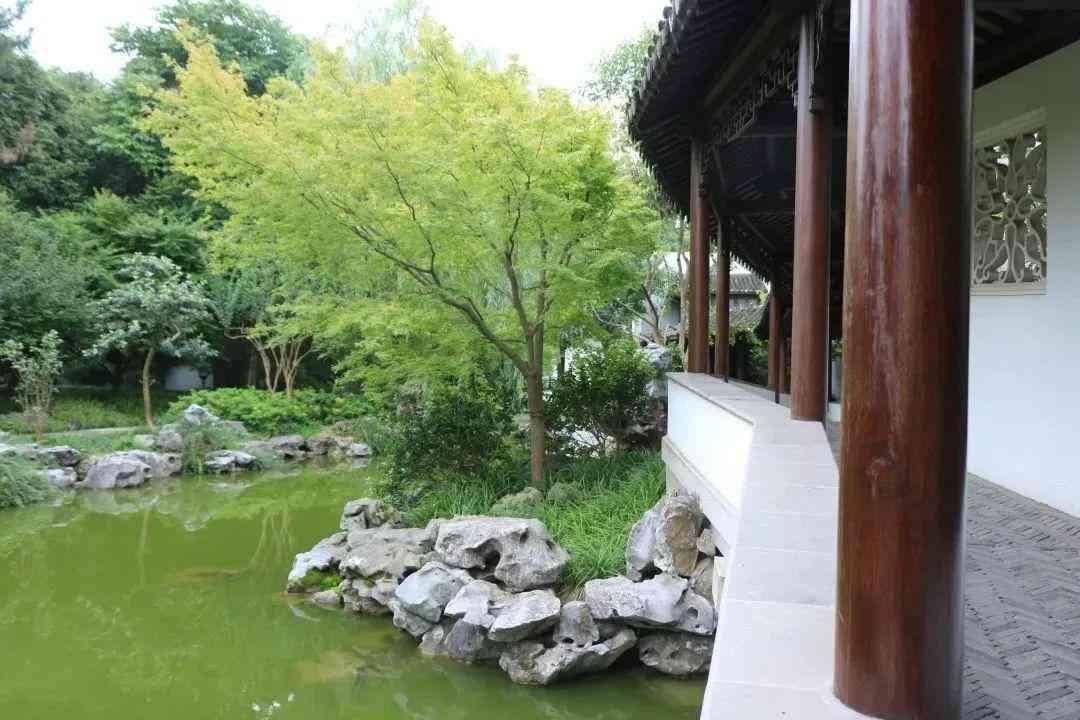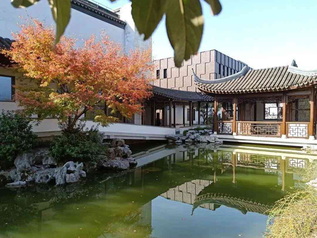 而穿过主厅向外走,则是一个小小的园林,一脉碧水蜿蜒其侧,两岸花树落英缤纷,再远处便是秋霞圃的清境塘,两者互为你我,融合无间,构成一出“双园记”。通过两者之间的小院,游客可以直接从秋霞圃进入嘉博继续参观。从园林往外看,粉墙黛瓦将博乐路阻隔在了视线之外,墙上是高高的甘蔗脊和空灵透漏的花窗,墙下是曲折的临水长廊,长廊两侧遍植枫树与鸡爪槭,与秋霞圃中枫林遥遥相对。