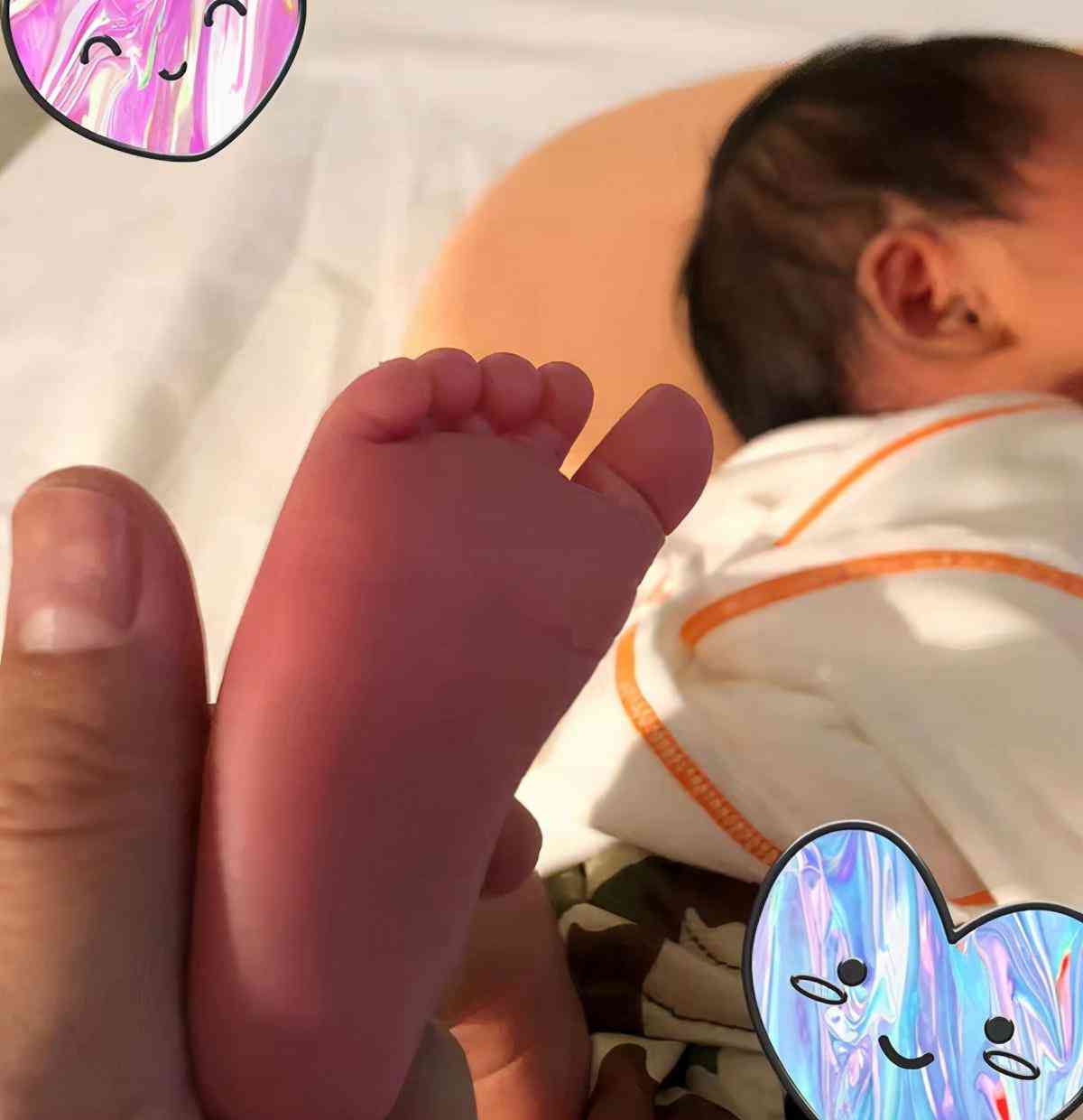 另一张照片中,林依晨的爱女正在床上呼呼大睡,饱满的耳朵与妈妈如出一辙。作为新手妈妈的林依晨把孩子的小脚丫抬起来随意玩弄,画面温馨。