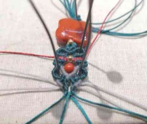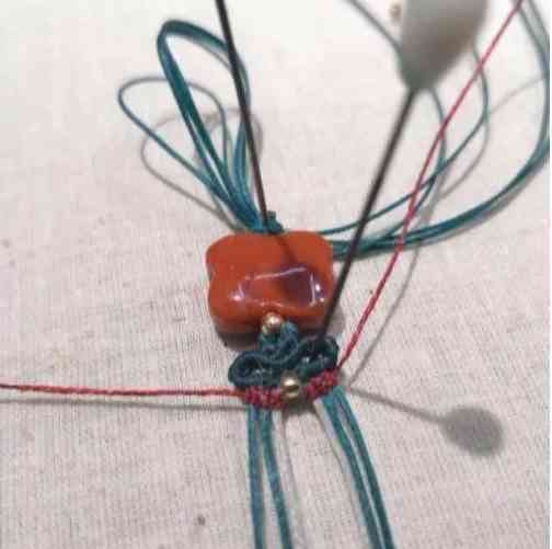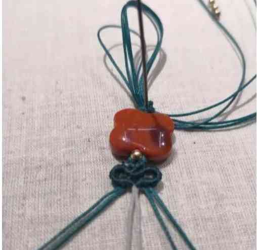 最后,中间的两根线相交打反斜卷结或其他结都可以,随自己喜好。