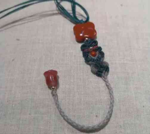 边上的两根墨绿色线分别做雀头结,合适长度。