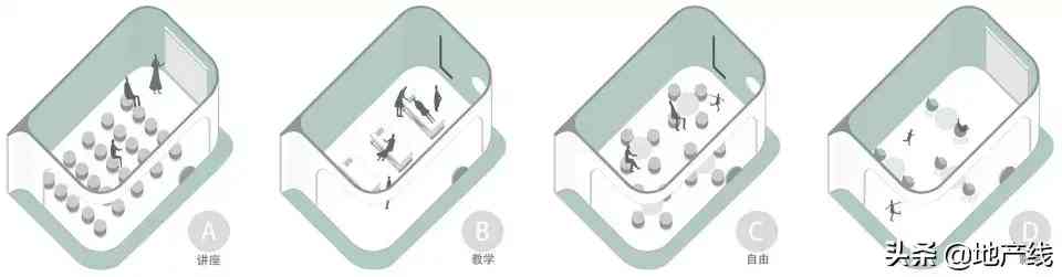 ▼多功能区的n种使用模式:讲座、教学、自由、影院…,the multi-functional area has a variety of using mode, such as for seminar, lecture, freetalk, movies and so on.