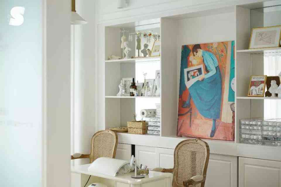soli家的风格以白色为主,木色的地板、大片的留白、金色的点缀、充足的阳光让每一位进来的顾客都心情大好,周末在这里待上一天,做个美甲美睫就再好不过了。