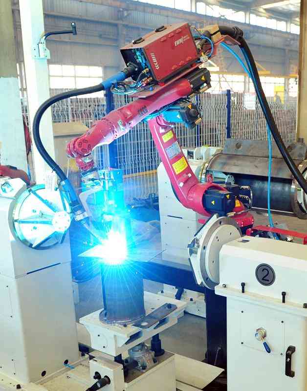 卫华集团生产线上的外罩焊接机器人 宋晓丹/摄