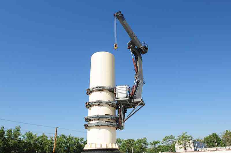 纽科伦自主研发生产的自攀爬起重机,能爬到几十米高的风电机塔架上进行高空作业。郝建森/摄
