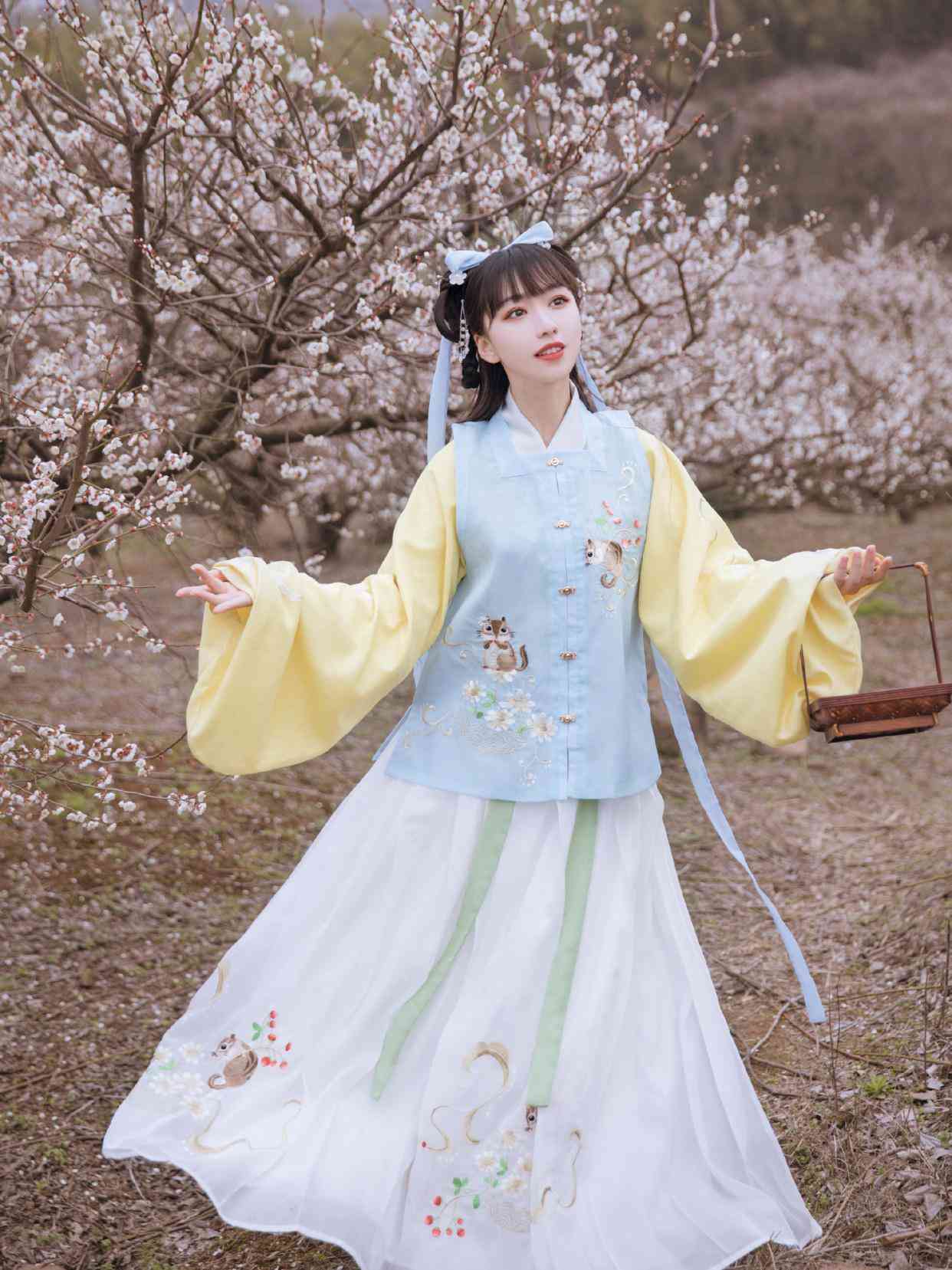 用蓝色和黄色撞色的搭配,让活泼可爱的感觉淋漓尽致的展现出来。只要穿上这件汉服,整个人都会变得非常的温柔而又可爱,可以说它是一件专门为夏天而设计的汉服了,现在汉服的工期都很长,我们也可以在冬季下单,夏季的时候就能收到汉服啦。