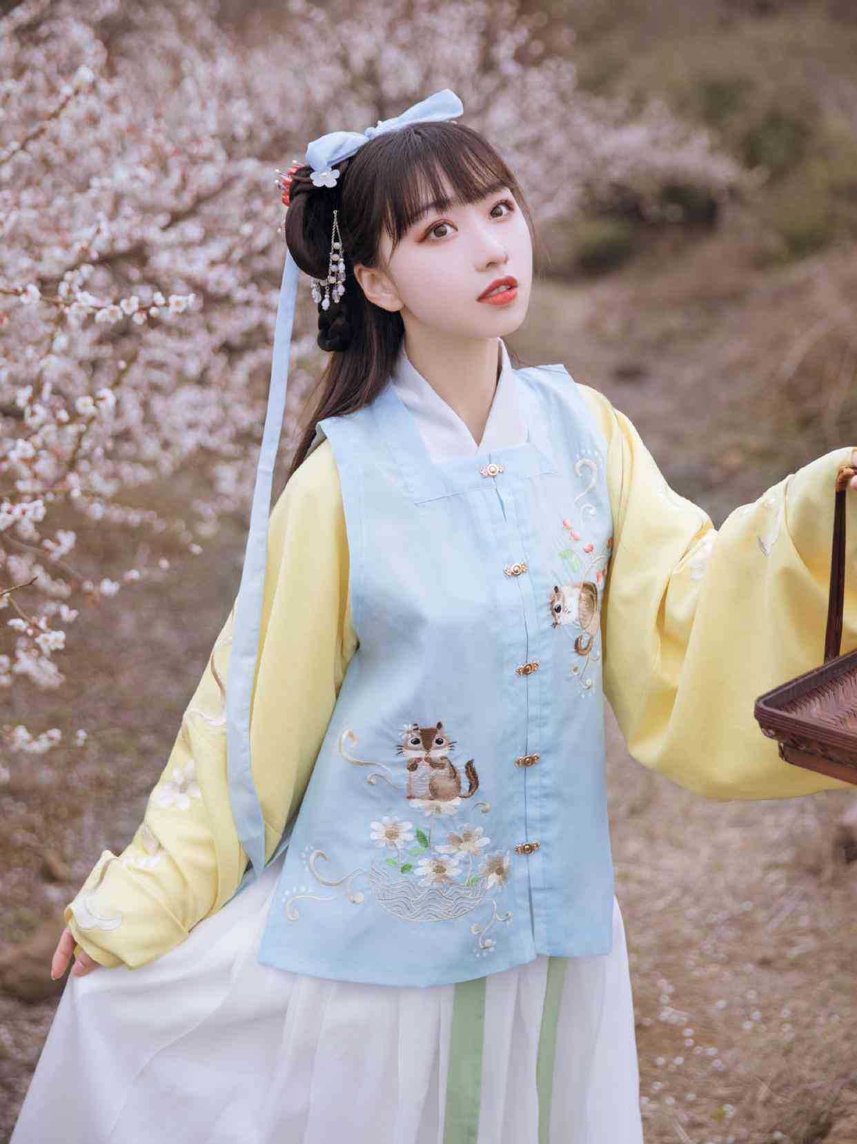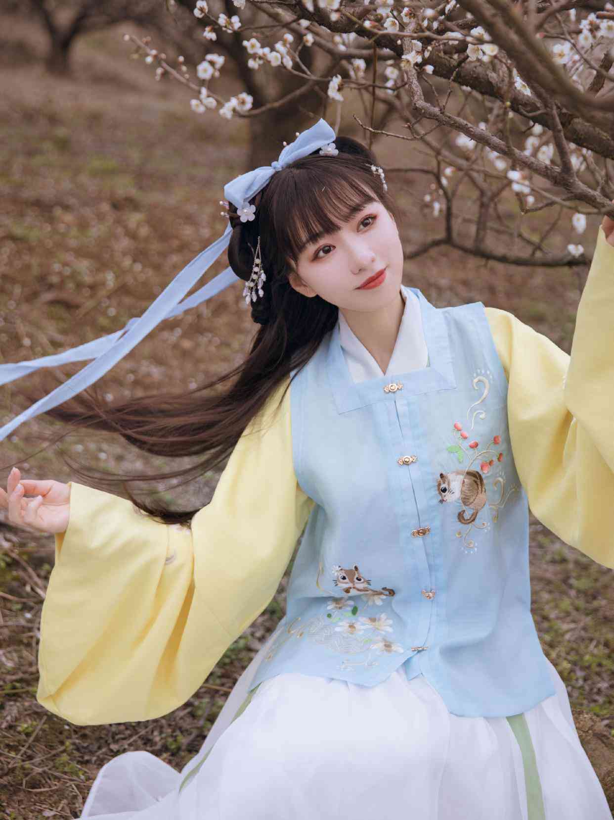 衣服上绣着的小松鼠看起来乖巧伶俐,好像拥有这件汉服的主人也是如此,呆萌的样子真是十分令人心动呢。