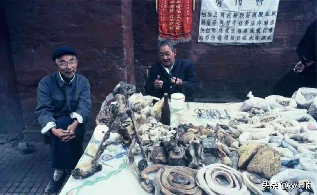 3.1985年春节,成都。上世纪,九眼桥市场里卖山货、并且包治百病的大爷。早十年,深圳这边村里的菜市场,也经常有穿着藏袍的藏胞在摆摊。他们边跳,边吆喝着卖虎爪和熊胆,我们小时候最喜欢围观这些玩意儿。