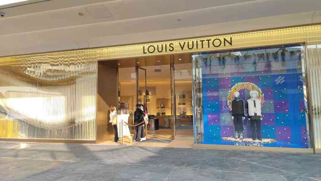 K大道人气最高的店铺有两个,一个是LOUIS VUITTON,因为限制进店人数,门口随时都有10人左右在排队。