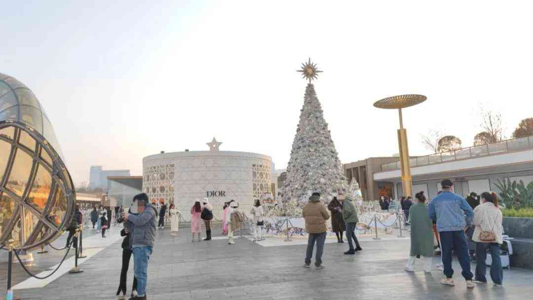 目前SKP吸引最多人拍照打卡的地方就是DIOR门口的银色圣诞树,圣诞树四周处于一种“全天无休”的状态,排不到队的甚至开始在旁边拍照。
