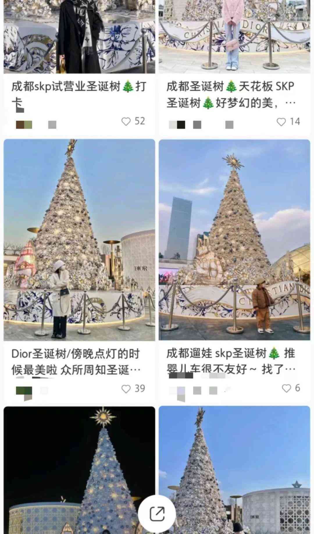 在小红书等社交软件上搜索#成都SKP打卡#,这个圣诞树是出镜率最高的。