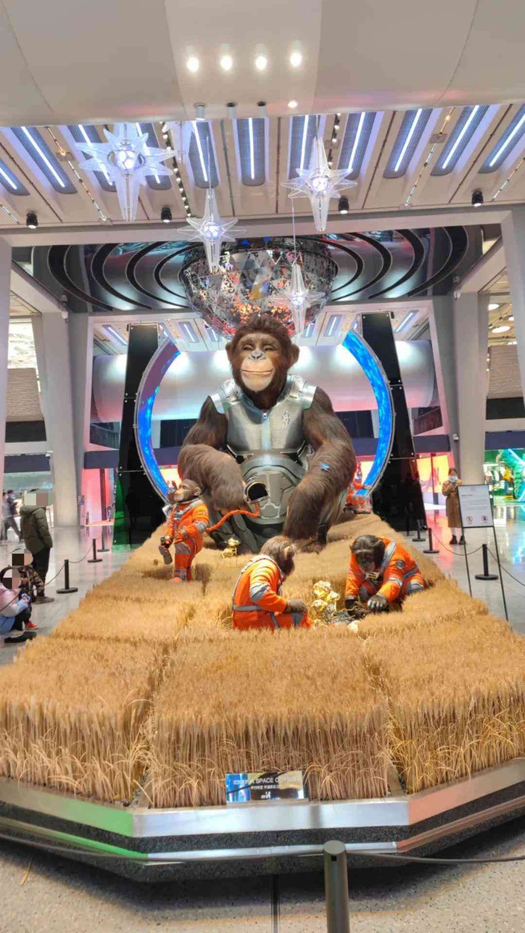 大猩猩装置名为“猩猩的太空漫步”,延续北京和西安科幻主题故事线,通过装置营造出一种强烈的科技感;许多小朋友到这里后就走不道了 。