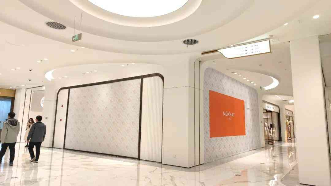 二楼女装区moynat暂未开业,目前还是围挡状态,该品牌是法国历史悠久的一个箱包品牌。