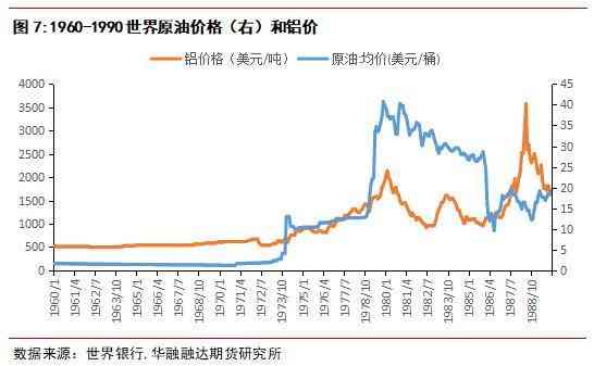 根据世界银行公布的铜和原油的月平均价格数据,在次石油危机的油价上涨阶段,原油价格上涨了3.8价,铝价上涨了38%;第二次石油危机时,原油价格上涨了1.8倍,铝价上涨了50%。