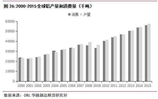 2008年金融危机后了铝的产能一直处于过剩状态,2015年全球电解铝产量达到了5780万吨,铝的产量超过了其他所有有色金属的总和。