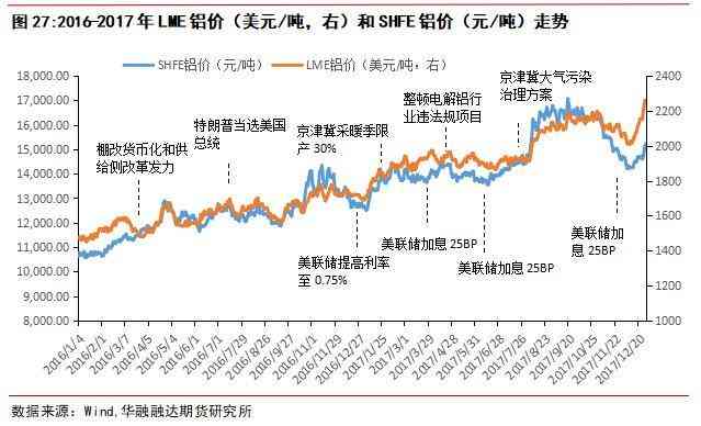 2017年,作为电解铝行业供给侧改革元年,政策成为影响铝价波动最重要的因素,在偏强的政策预期和美联储加息背景的博弈下,价格整体呈现偏强走势。