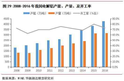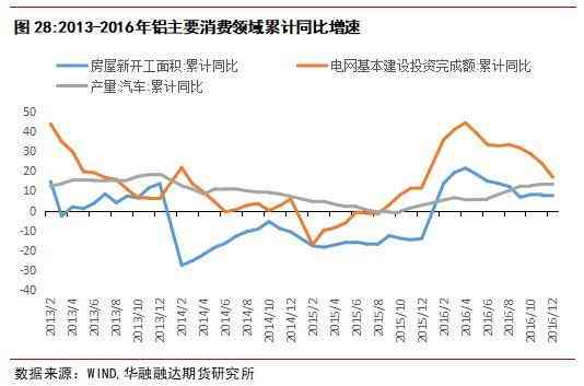 在棚改和供给侧改革的推动下房地产领域再次高速发展。带动地产、电缆、汽车等领域强势复苏。随着下游需求改善2016年铝价从熊市低谷中大幅反弹,LME铝价从年初的1483美元/吨涨至年末的1701.5美元/吨。SHFE铝价也从10745元/吨涨至12795元/吨。国内供给侧改革和棚改货币化初见成效,经济稳步复苏。