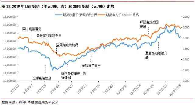 2020年初全球爆发新冠疫情,悲观经济预期下,全球出现流动性恐慌。之后在全球经济复苏和全球央行的宽松政策刺激下,铝价又惊奇的V型反转创出疫情前的新高。具体来看,2020年沪铝走势可以大致分为4个阶段: