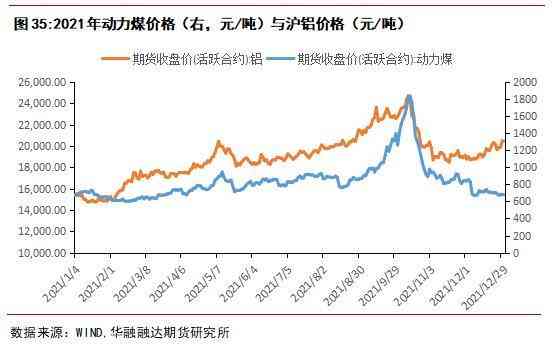 第三阶段(2021年10月中旬-12月):由于国家监管动力煤价格自高位一路狂跌至800元/吨左右暴跌,引发成本坍塌,铝价出现连续暴跌行情,铝价自24695元/吨的高位持续下挫,一度跌破19000元/吨。