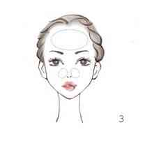 步骤3:额头与鼻子部位油脂分泌较多,可适当延长拭擦时间