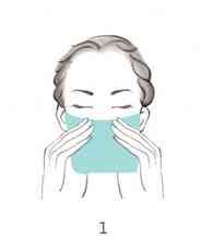 Step1: 使用前先清洁面部,或以热毛巾敷面2分钟后再开始敷面膜——帮助毛孔打开,排出皮脂和污垢,有助于面膜营养成分吸收。