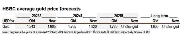 汇丰将2023年ETF持有量增加的预测从150吨下调至125吨,并保持2024年增加90吨的预测不变。