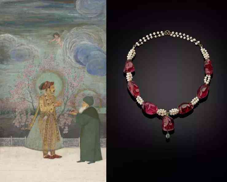 这条莫卧儿皇室代代相传的尖晶石项链上刻有许多铭文,其中就包括“荣耀尖晶石”,其所指的是阿克巴大帝,印度莫卧儿帝国第三代皇帝,他被认为是莫卧儿帝国的真正奠基人和最伟大的皇帝。把自己的名号刻在珍贵稀有的宝石上,几乎每位莫卧儿皇室都干过,以此来彰显地位的尊贵。