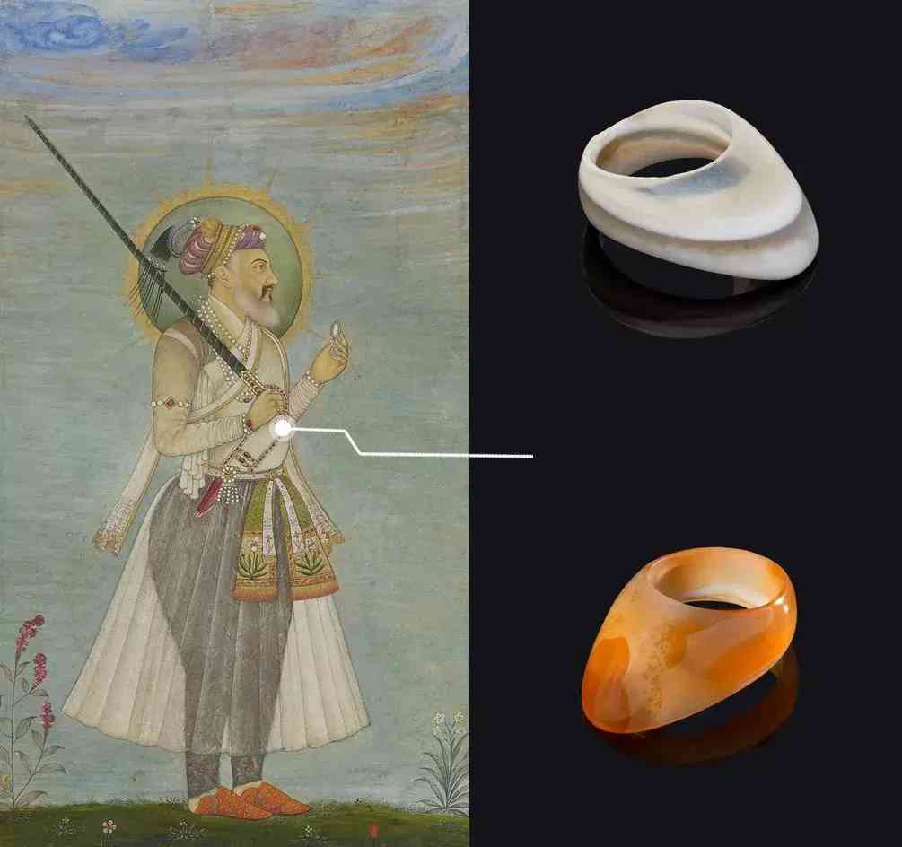 除了头上戴的,脖子上挂的,善武的王公当然要带上精致的弓箭手指环来显示自己的英勇与地位。既能保护手指不在射箭中受到磨损和伤害,也能在平时彰显自己的男儿本色,可以说是很实用的珠宝配饰了。