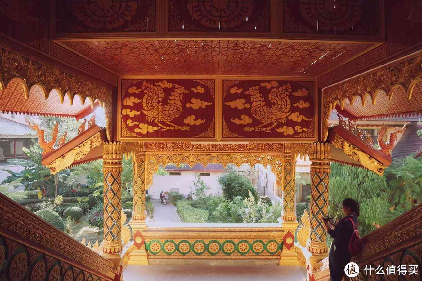 咖啡厅上面,一定要上去俯拍。白塔,超级出片。荷叶池,进门左手边。总佛寺正面。刚进门左手边就是傣王行宫,听到旁边带团的导游说,以前傣王妃来玩,因为景色太美了就被吸引了灵魂,所以叫“春欢”(傣意是灵魂之园) 。傣王行宫很西双版纳,无论是外观建筑还是座位,都能脑补出一出大戏。
