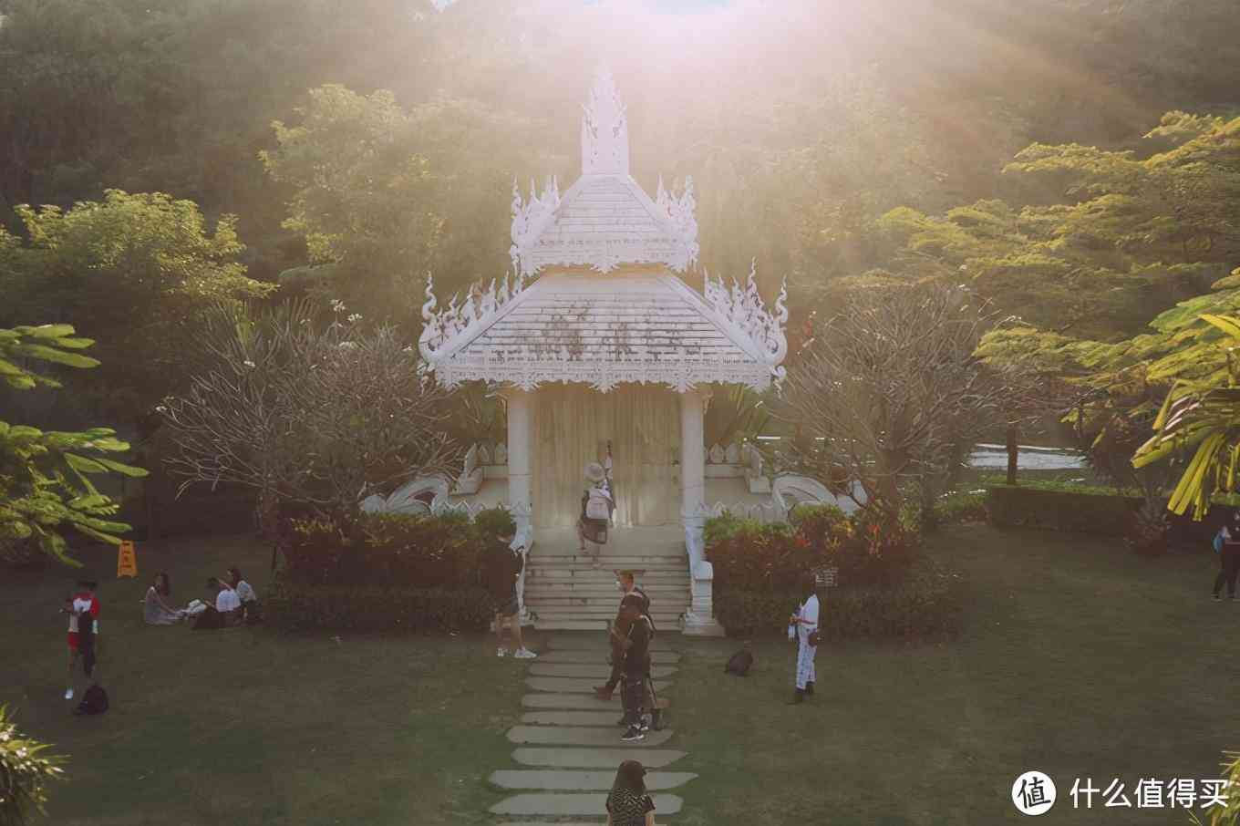 不用买电瓶车!公园不大,只要体力不是太费,完全可以步行!有的旅行团直接坐观光车到公园尽头看大象表演,然后坐观光车回去,就很无聊。曼听公园总体还是很好逛的,我们去的时候是下午四点多,刚好一天中阳光最温柔的时候,超级暖和。曼听御花园是傣王以前的御花园,也是版纳最老的公园啦,建筑风格很有泰国寺庙的感觉。