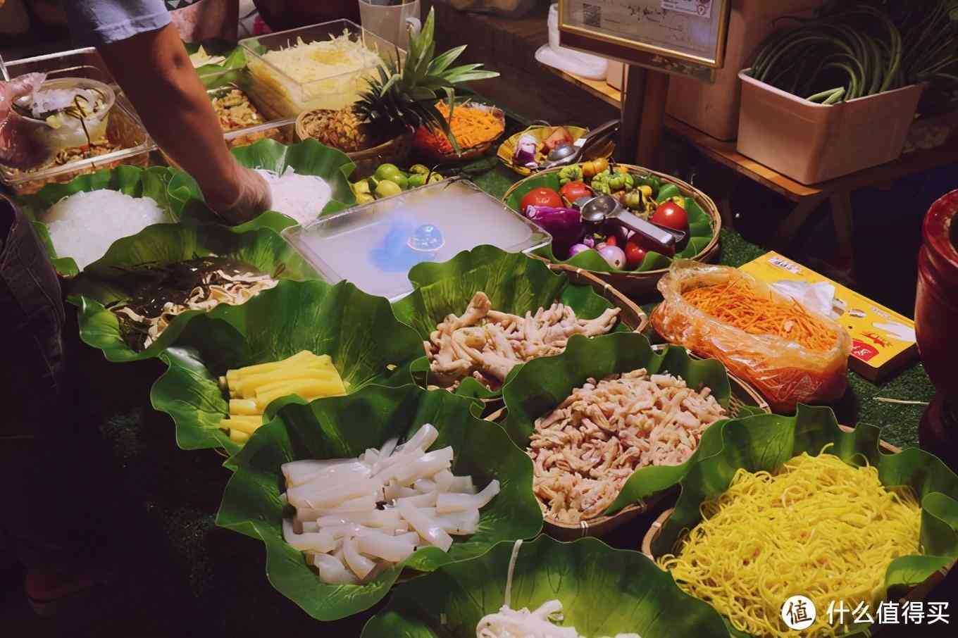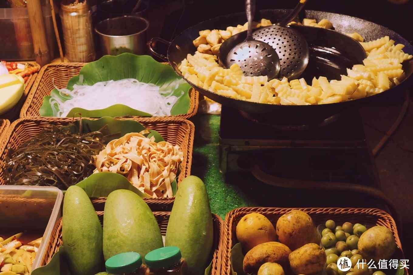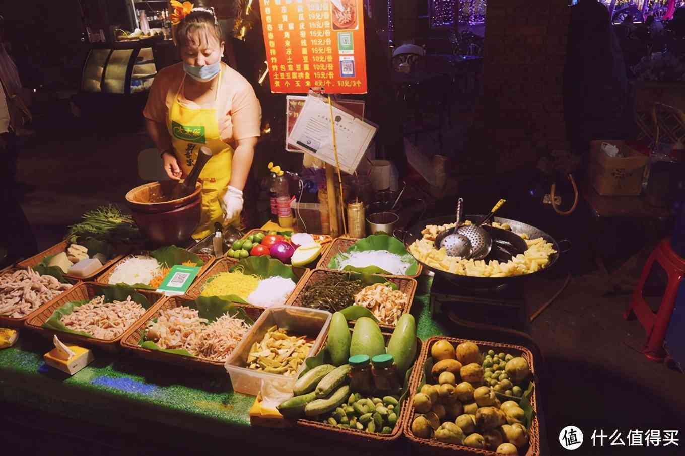 星光夜市有很多小吃摊子,春鸡脚、舂木瓜、包烧鸡脚筋、柠檬凉粉、青芒、蚝油辣椒芒果、各种各样的傣味烧烤、香茅草烤鱼、各种水果果汁等。不要吃晚饭了,直接来星光夜市就足够了。