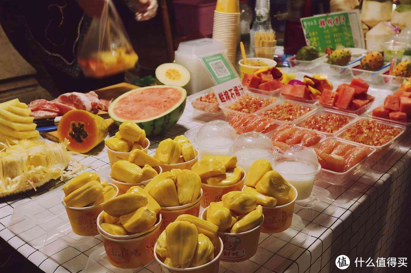 后来渴了,就随便找一家芒果沙冰坐下,和老板随便聊,水果摊老板说一般10月以后人就少很多啦,今年人还是比较多的,可能因为前半年都没怎么出来的缘故吧。在这闲聊,就很有以前看美食纪录片的感觉。老板还很热心的让我尝各种水果,印象最深的是配着辣椒和耗油的芒果,出乎意料的味道,害挺好吃。西瓜巨甜,是我吃过最甜的西瓜,沙冰也用料很足,老板特别腼腆,老板娘就很热心肠。