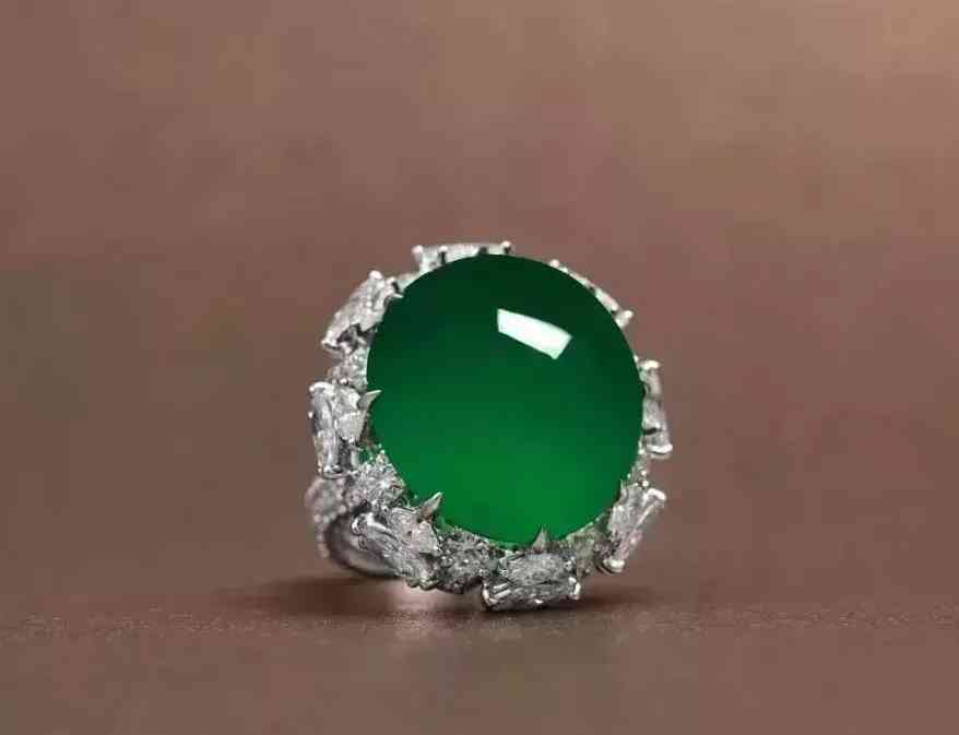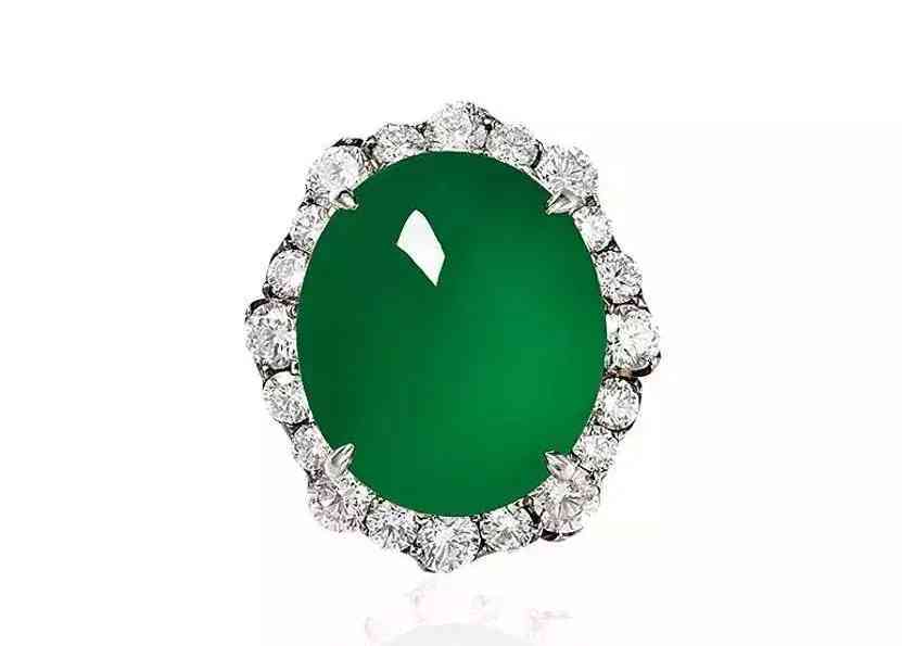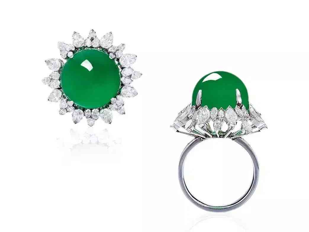 缅甸天然翡翠蛋面配钻石戒指