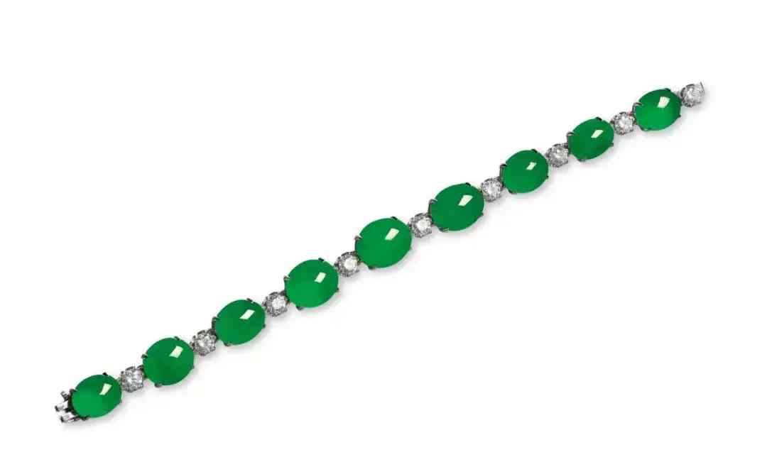 大家都知道手镯不仅在翡翠首饰中地位非凡,而且也是翡翠原料起货的,手镯对玉料的要求相当高,要有足够大的片料才能取出完整无裂的手镯,所以一枚满绿莹润,种水色俱佳的翡翠手镯是十分稀有,往往能拍出千万高价甚至更高价格。