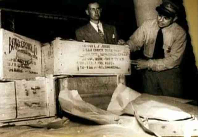 图|1950年美国联邦地调查局人员检查钱学森的行李