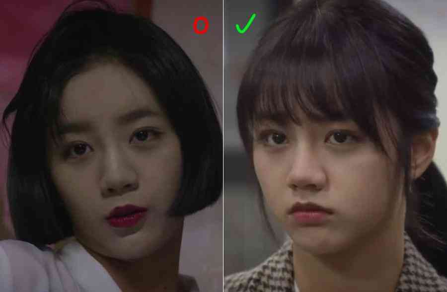 比如同一副眉眼,眉毛线条锋利(左)就是比线条模糊的妆感重: