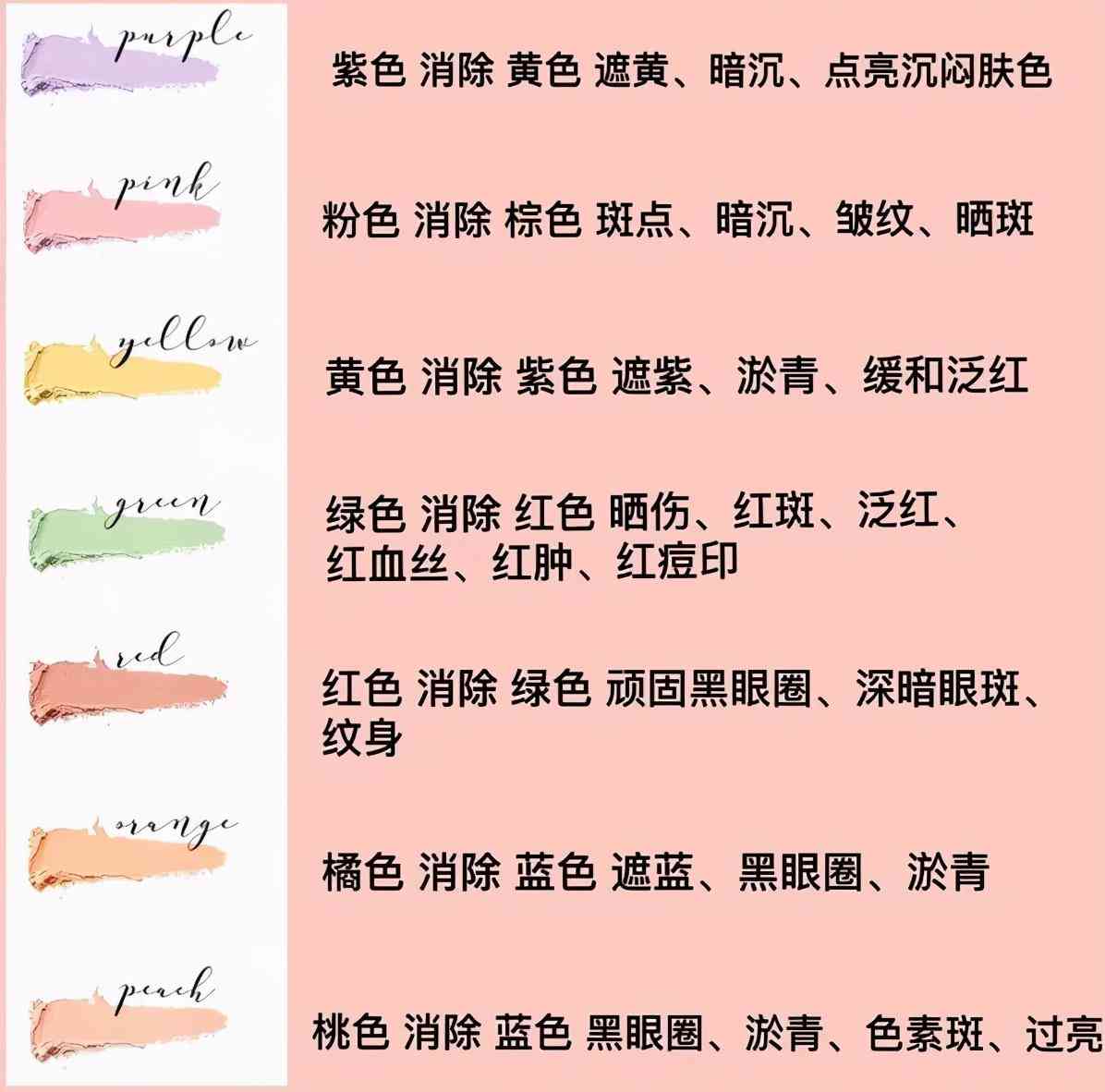 这里给大家个隔离/遮瑕配色表: