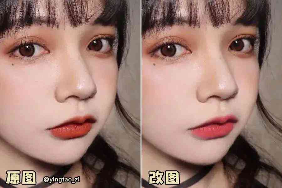 如果把口红和其他区域的色调统一起来,质感就出来了: