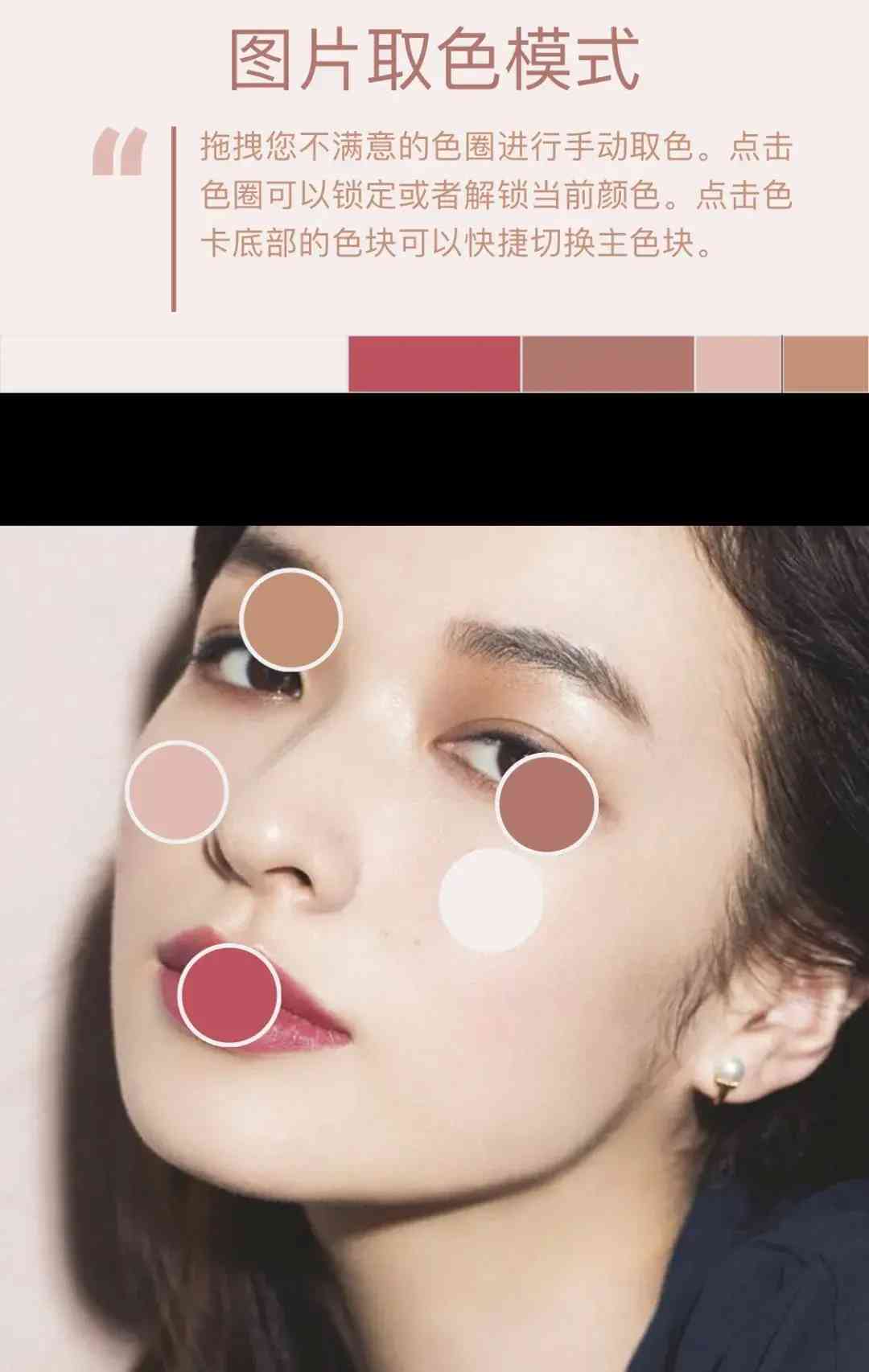 色感较差的新手,试试取色软件,把你觉得好看的妆照放上去,吸取相应部位的颜色: