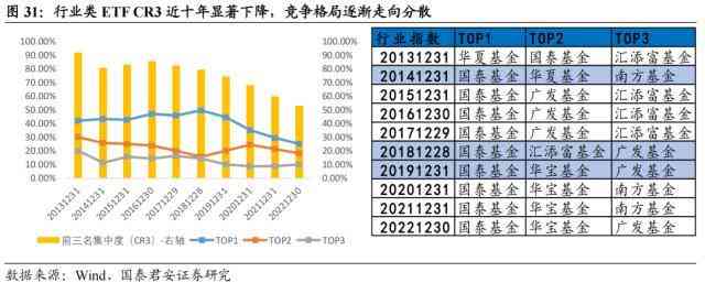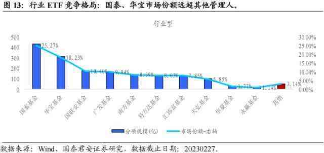 国泰、华宝在行业类ETF的方向上竞争优势显著,市场份额远超其他管理人。
