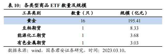 现阶段市场上黄金类ETF主要为跟踪上海金(SHAU.SGE)和跟踪SGE黄金9999(Au9999.SGE),其中跟踪SGE黄金9999指数的ETF普遍规模更大、流通性更强。