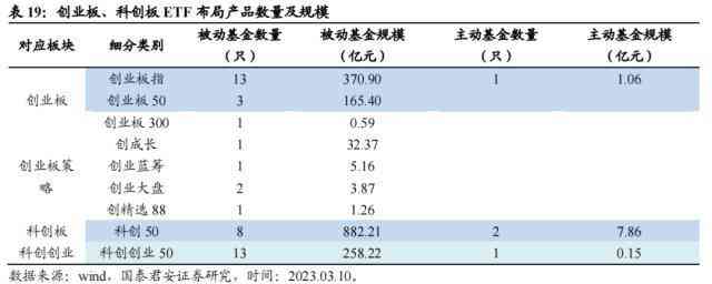 科创创业50指数目前格局尚未稳固,尚有可为:共有14只产品,其中被动产品13只,各产品间规模差距并不悬殊。