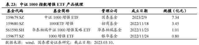 相较于大盘宽基指数,中小宽基指数更适合量化策略的运用。存续的指数增强ETF产品中,布局沪深300指数的产品仅3只,而布局中证500、中证1000、双创50、科创50等中小宽基指数的产品共计12只,规模合计49.22亿元。