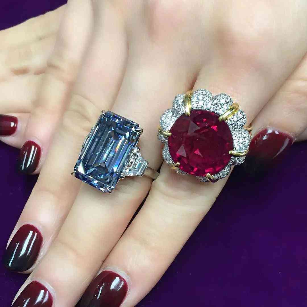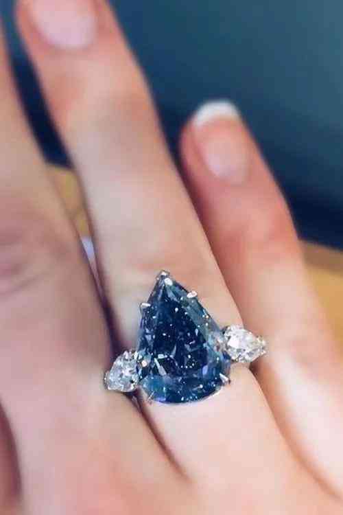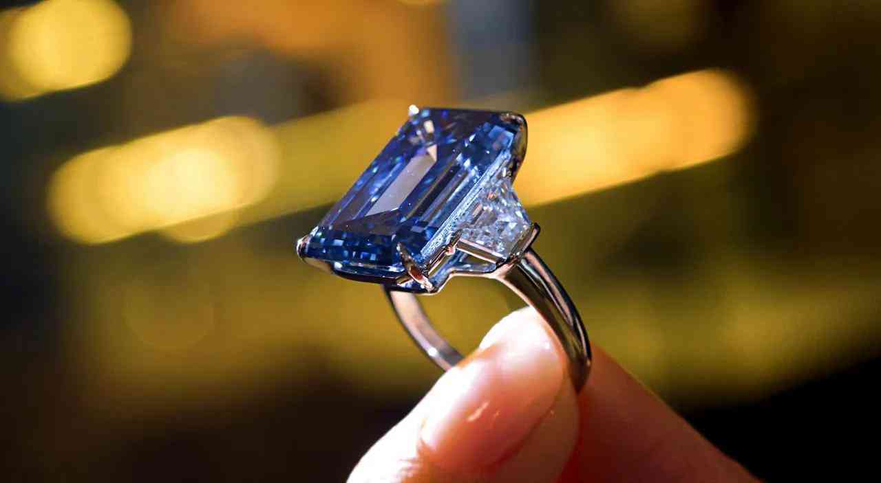 2014 年 5 月佳士得拍卖的温斯顿蓝戒指镶有世界上最大的无瑕艳彩蓝钻,价值极高。