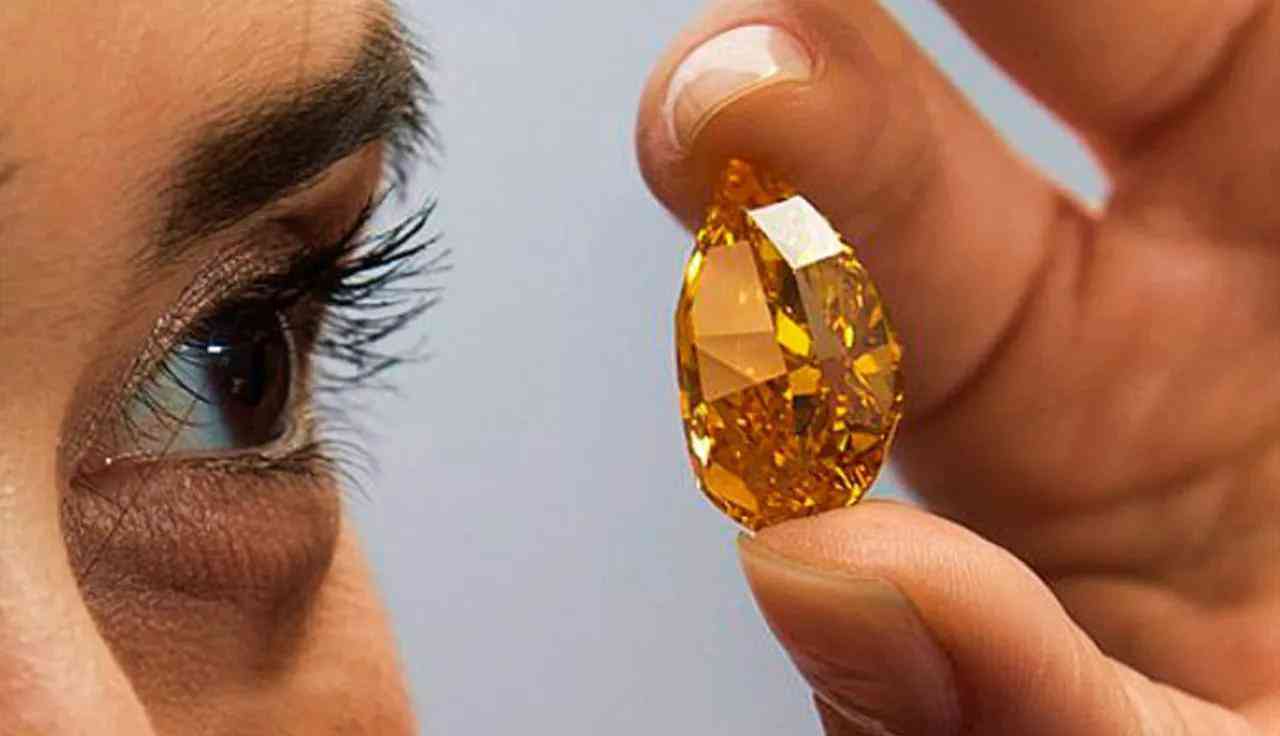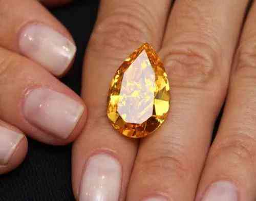 这件珠宝以橙色着称,但由于几年前在拍卖会上的售价,它也是世界上最著名的钻石之一。这颗 14.82 克拉的梨形艳橙色钻石以惊人的 3554 万美元售出。